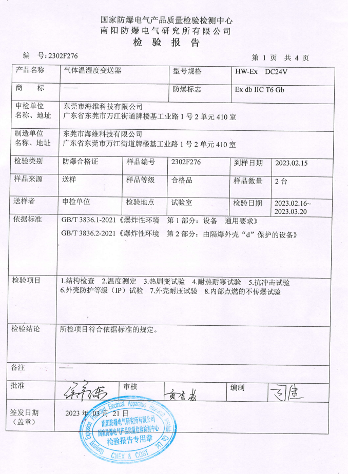 防爆檢測報告